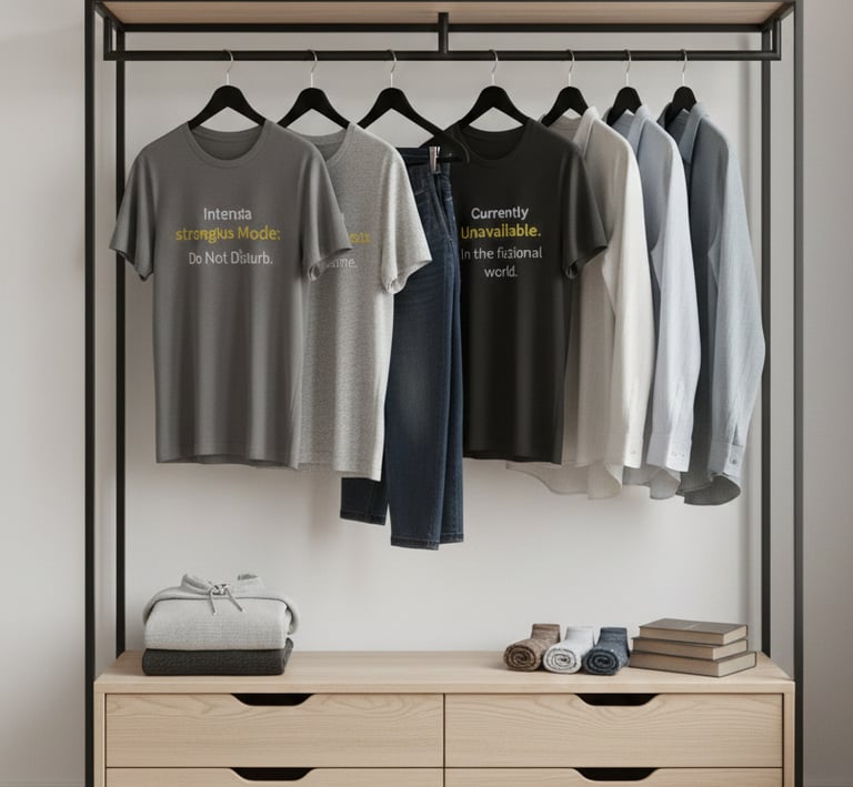 Our apparel and mugs are designed to be your witty, minimalist voice. We craft premium, high-quality gear that acts as a visual status update, so you can save your energy for the work that truly matters.
