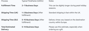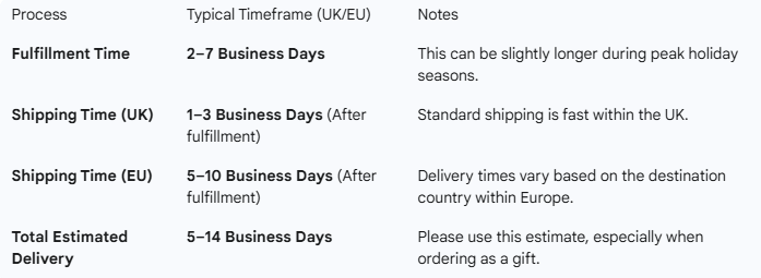 🚚 Shipping & Delivery Times (UK/EU Focused)